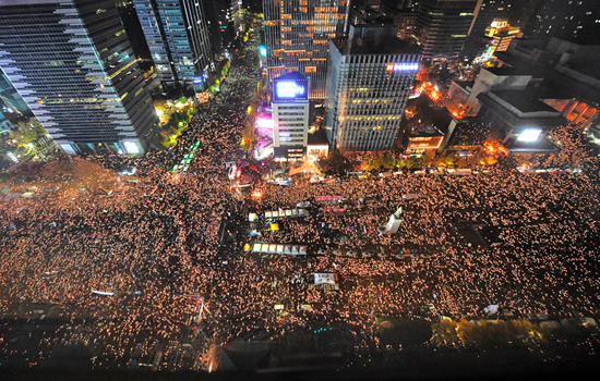 Στην Νότιο Κορέα σε συνέχεια των κινητοποιήσεων του φθινοπώρου, 750.000 κατέβηκαν στους δρόμους της Σεούλ στις 11 Φλεβάρη απαιτώντας την παραίτηση της προέδρου Γκιουν-χιε Παρκ. Λίγες βδομάδες αργότερα, τον Μάρτιο, το κίνημα στην Νότια Κορέα γιόρτασε με νέες μαζικές διαδηλώσεις τη νίκη του γκρεμίζοντας από την εξουσία την πρόεδρο Γκιουν-χιε Παρκ και στέλνοντάς την στα δικαστήρια.