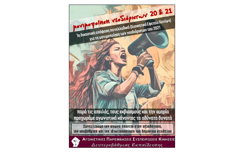 Με απόφαση του το Διοικητικό Εφετείο Χανίων υποχρεώνει τη Διοίκηση να μονιμοποιήσει τους νεοδιόριστους εκπαιδευτικούς του 2020-2021 που συμμετείχαν στην απεργία-αποχή απέναντι στην αξιολόγηση. Η απόφα...