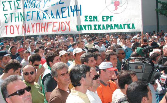 Οι εργαζόμενοι του Σκαραμαγκά το 1994-95 είχαν δώσει ένα σκληρό αγώνα ενάντια στην ιδιωτικοποίηση που προωθούσε η τότε κυβέρνηση Σημίτη. Τα επόμενα χρόνια οι κυβερνήσεις του ΠΑΣΟΚ κατάφεραν να σπρώξουν βήμα-βήμα τα ναυπηγεία στα χέρια των αρπακτικών της αγοράς. Αλλά δεν κατάφεραν να διαλύσουν ούτε τον συνδικαλισμό ούτε τις περισσότερες από τις κατακτήσεις των εργαζόμενων.