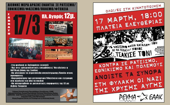 Η καμπάνια για τη διαδήλωση στις 17 Μάρτη στην Πάτρα έχει ξεκινήσει εδώ και βδομάδες με εξορμήσεις, με πάρτυ, με αφισοκολλήσεις. Στην τελική ευθεία οργανώνουμε αντιρατσιστικές-αντιφασιστικές μέρες δράσης.