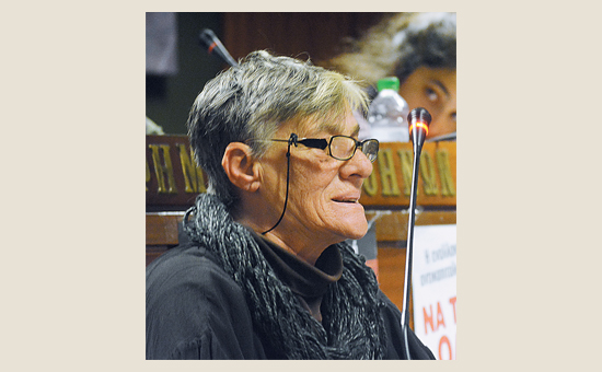 Η ΕΣΗΕΑ πλημμύρισε με κόσμο από την αίθουσα μέχρι τις σκάλες. Ήταν εκεί μαζικά ένα πολύχρωμο ακροατήριο της “άλλης Αθήνας”, κόσμος της εργατικής αντίστασης, καθαρίστριες και γιατροί, φτωχόκοσμος που δίνει την μάχη της επιβίωσης από τους δρόμους του Θησείου μέχρι την κοινωνική πολυκατοικία Μπουμπουλίνας 36 που δεν κατάφερε να εκκενώσει ο Καμίνης, μετανάστες θύματα ρατσιστικών επιθέσεων όπως ο Αλι Σουαρί από την Γουινέα που κατήγγειλε την αστυνομική βία, ο Χαντίμ Χουσεΐν, πατέρας του δολοφονημένου από χρυσαυγίτες Σαχζάτ Λουκμάν, η Μαρία Κασκαρίκα, μητέρα του φοιτητή Αλέξη Λάζαρη, μιά οικογένεια προσφύγων που βρίσκεται υπό έξωση, αγωνιστές του αγώνα για την υπεράσπιση του περιβάλλοντος όπως η Ελένη Πορτάλιου, πρωταγωνίστρια στη σύγκρουση για να μην θυσιαστεί το Ελληνικό στο βωμό του χρέους στους Τραπεζίτες. Η Έμμα από το Καμερούν με την κόρη της, με τρεμάμενη φωνή, να στηρίζει τον αγώνα για τα δικαιώματα των γυναικών και των παιδιών στις γειτονιές της εγκατάλειψης.
