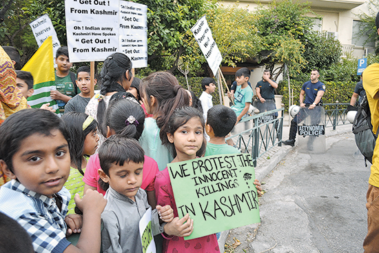 Εκατοντάδες Πακιστανοί με τις οικογένειές τους ταξίδεψαν από όλη την Αττική αλλά και την Βοιωτία με πούλμαν, αυτοκίνητα και τρένα για να βρεθούν στη συγκέντρωση και να φωνάξουν ενάντια στη σφαγή και στο στρατιωτικό νόμο που έχει επιβάλει ο πρωθυπουργός της Ινδίας Μούντι και ο Ινδικός στρατός στο Κασμίρ. Με την απόφαση της κυβέρνησης του Ναρέντρα Μούντι στις 4 Αυγούστου να καταργήσει την αυτοκυβέρνηση του Κασμίρ, πλέον το πρώην κρατίδιο του Τζαμού και Κασμίρ ενσωματώνεται εντελώς στην Ινδία και διοικείται κεντρικά από το Δελχί, ενώ το κοινοβούλιό του θα έχει περιορισμένο ρόλο.