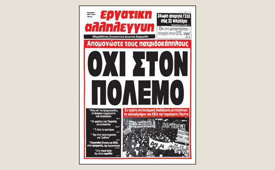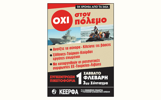 Η απάντηση στην πολεμική απειλή είναι το χτίσιμο ενός ισχυρού αντιπολεμικού κινήματος και στις δύο πλευρές του Αιγαίου, που με μπροστάρη την εργατική τάξη και τη νεολαία –που θα κληθούν να πληρώσουν ακριβά το μάρμαρο σε μια τέτοια σύρραξη- θα βάλουν τέρμα στα πολεμοκάπηλα σχέδιά τους.