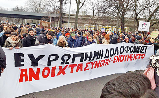 Το σύνθημα γραμμένο στα ελληνικά, στο πανό της μαζικής διαδήλωσης που πραγματοποιήθηκε στο Βερολίνο στις 7 Μαρτίου ενάντια στην ρατσιστική επίθεση της ΕΕ -και συγκεκριμένα της γερμανικής και της ελληνικής κυβέρνησης που πρωτοστατούν σε αυτήν τη βαρβαρότητα- εκφράζει με λίγα και απλά λόγια την διάθεση της πλειοψηφίας του κόσμου που παρακολουθεί σοκαρισμένος τις εικόνες ντροπής από τον Έβρο και το Αιγαίο.