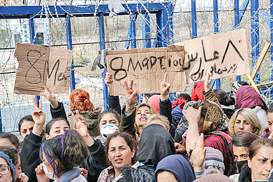 Σε όλες τις διαδηλώσεις για τις 8 Μάρτη συμμετείχαν φέτος πρόσφυγες και προσφύγισσες δίνοντας αυτόν τον τόνο παντού, αλλά και τα συνθήματα που επικράτησαν αναδείκνυαν πόσο στενά συνδεδεμένη είναι η ρατσιστική πολιτική της Νέας Δημοκρατίας με τις σεξιστικές της επιθέσεις. Τις προηγούμενες ημέρες είχε κυκλοφορήσει και κάλεσμα των γυναικών της Μόριας για μαζική συμμετοχή όλων στις διαδηλώσεις της 8 και 21 Μάρτη –οι γυναίκες αυτές με τον ξεσηκωμό τους τον Γενάρη ξεκίνησαν τα γεγονότα που οδήγησαν στην εξέγερση στα νησιά ενάντια στα κλειστά στρατόπεδα.