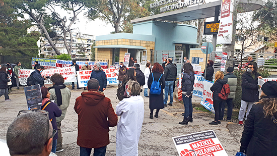Με μία πρωτοφανή μαζική και ενωτική συγκέντρωση στην πύλη του νοσοκομείου συμμετείχε και το Κρατικό Νίκαιας στην πανελλαδική μέρα δράσης για την Υγεία. Στις 12 το μεσημέρι εργαζόμενοι του νοσοκομείου, γιατροί στην πλειοψηφία τους, άνοιξαν το πανό τους στο προαύλιο του νοσοκομείου, ενώ λίγα μέτρα μακριά συμμετείχαν δεκάδες συμπαραστάτες, από σωματεία, από δυνάμεις του ΠΑΜΕ, της ΑΝΤΑΡΣΥΑ και άλλων οργανώσεων της αριστεράς.