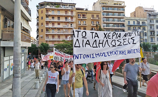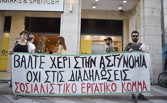 “Πραγματοποιήθηκε και στο Βόλο συγκέντρωση ενάντια στο ν/σ που ειχε καλέσει η ΑΔΕΔΥ Μαγνησίας. Συμμετείχε ένα μεγάλο κομμάτι από την Αριστερά της πόλης και παρευρέθηκαν περίπου 100 άτομα. ‘Βάλτε χέρι στην αστυνομία όχι στις διαδηλώσεις' ήταν το σύνθημα της παρέμβασης μας τόσο με το πανό μας όσο και με την Εργατική Αλληλεγγύη” μας είπε ο Τάσος Τσιούνης.