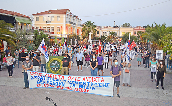 Μια σπουδαία απάντηση δόθηκε με την μηχανοκίνητη πορεία το απόγευμα της Δευτέρας 14/9 και το πανεργατικό συλλαλητήριο που οργάνωσαν την Τρίτη 15/9, το Εργατικό Κέντρο Λέσβου και το νομαρχιακό τμήμα της ΑΔΕΔΥ. Εκατοντάδες συγκεντρώθηκαν στην πλ. Σαπφούς κι εκτός από τα συνδικάτα που το κάλεσαν, συμμετείχαν η Ομοσπονδία Αγροτικών Συλλόγων, η Επιτροπή Αγώνα Μανταμάδου, η ΚΕΕΡΦΑ Λέσβου, μέλη του ΠΑΜΕ και της Λαϊκής Συσπείρωσης, η δημοτική κίνηση που πρόσκειται στο ΣΥΡΙΖΑ κ.α. “Ούτε κλειστά – ούτε ανοιχτά, στρατόπεδα συγκέντρωσης δεν θέλουν τα νησιά” ήταν το βασικό σύνθημα που συνοδευόταν από συνθήματα ενάντια στους φασίστες. “Όχι στα στρατόπεδα συγκέντρωσης, έμπρακτη αλληλεγγύη στους πρόσφυγες κι απεγκλωβισμός τους, ενίσχυση του νοσοκομείου και μαζικά τεστ για τον κορονοϊό” ήταν τα βασικά αιτήματα που πρόβαλε το κάλεσμα των συνδικάτων.