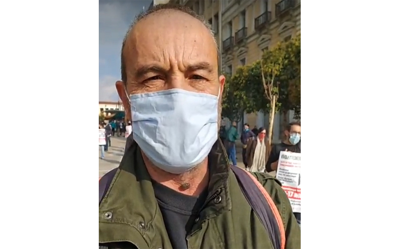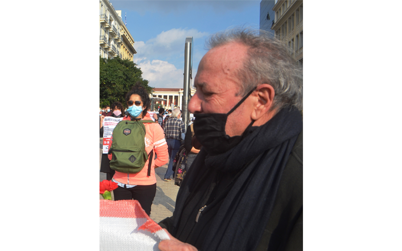 Η κοινωνία ζει κάτω από μια νομική δικτατορία. Είναι μια δημοκρατία στα μέτρα τους. Αυθαιρετούν εις βάρος όλου του λαού. Δες τι νομοσχέδια περνάνε. Για το δικαίωμα στη δουλειά και στη ζωή παλεύουμε. Ποια Παιδεία, ποια Υγεία και ποια Ελευθερία... Ούτε στη δικτατορία δεν τα βλέπαμε αυτά. Ας έρθουν να με πιάσουν. Τι θα μου κάνουν; Έχω περάσει τα μύρια όσα...