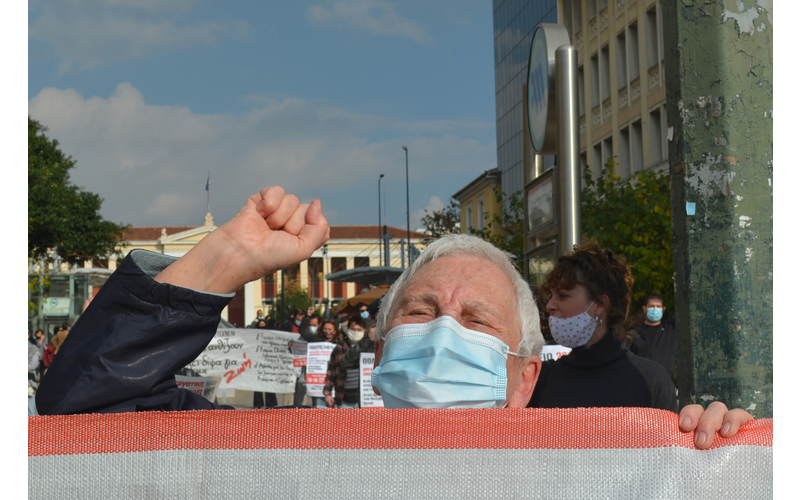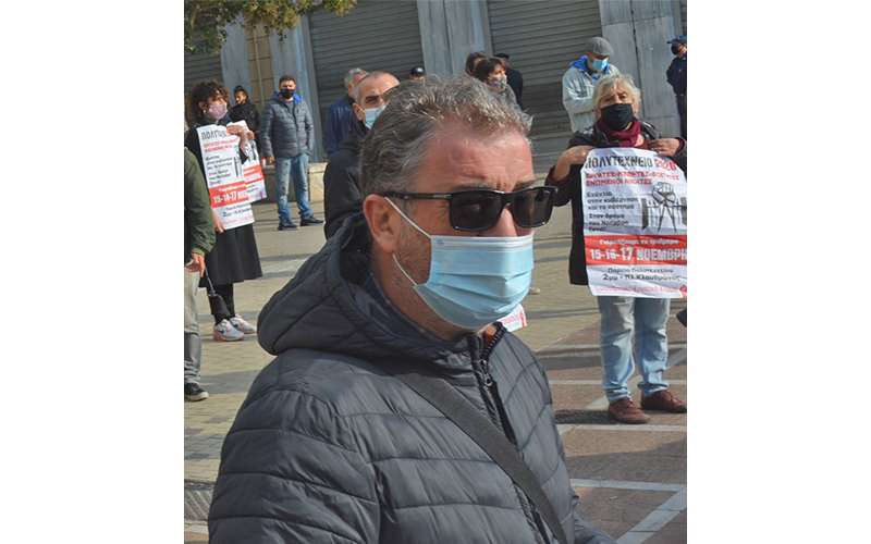 Μπροστά, σε απόσταση αναπνοής από τα ΜΑΤ, το πανό έγραφε “Ο δρόμος του Νοέμβρη επαναστατικός”. Το κράταγαν αγωνιστές/τριες κατά της δικτατορίας όπως ο ιστορικός εκφωνητής της κατάληψης του '73, Δημήτρης Παπαχρήστος, ο δημοσιογράφος Γιώργος Φιλιππάκης, η συντρόφισσα Μαρία Στύλλου, στέλεχος της επαναστατικής αριστεράς από τα χρόνια της Χούντας και ηγετικό μέλος του ΣΕΚ, ο Χρήστος Τζουρντός, μέλος του ΣΦΕΑ '67-'74. Μαζί τους υγειονομικοί από μια σειρά νοσοκομεία της Αθήνας που είχαν κατέβει στη διαδήλωση με τις άσπρες στολές τους, δικηγόροι μέλη της πολιτικής αγωγής στη δίκη της Χ.Α, συνδικαλιστές, δημοτικοί σύμβουλοι, εργαζόμενοι από μια σειρά χώρους, φοιτητές/τριες κ.α. Η απαγόρευση είχε σπάσει, γεγονός που φάνηκε και στον ενθουσιασμό με τον οποίο βάδισαν όλοι αυτοί σε μια οργισμένη πορεία προς την Ομόνοια, όταν η αστυνομία εξαπέλυσε την επίθεσή της. Δείτε δίπλα όσα μας δήλωσαν αγωνιστές/τριες την ώρα της συγκέντρωσης.