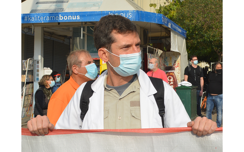 Κατεβήκαμε στην κινητοποίηση, εργαζόμενοι από τα δημόσια νοσοκομεία. Έχουμε έρθει γιατροί και νοσηλευτές από τον Αγ.Σάββα, το Γεννηματάς, το Αγ.Όλγα κι άλλα νοσοκομεία. Δίνουμε καθημερινά τη μάχη απέναντι στην πανδημία, απέναντι σε μια πολιτική που έχει αφήσει τα νοσοκομεία ανοχύρωτα. Το ΕΣΥ βουλιάζει. Σήμερα ενώνουμε τα αιτήματά μας για προσλήψεις, μονιμοποιήσεις, αύξηση των ΜΕΘ, για λεφτά για την Υγεία και τις ανάγκες μας. Είμαστε ήδη σε κινητοποιήσεις και διεκδικούμε εδώ και τώρα η κυβέρνηση να κάνει μαζικές προσλήψεις. Τη σημερινή διαδήλωση στηρίζει και η ΕΙΝΑΠ, οι γιατροί Αθήνας και Πειραιά, που καλύπτει όλο τον κόσμο των νοσοκομείων που κατεβαίνει να διαδηλώσει σήμερα.