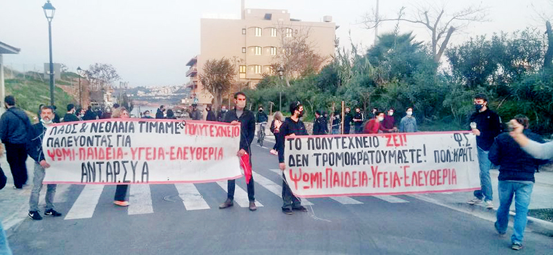 Η απαγόρευση έσπασε και στα Χανιά από όπου μεταφέρει ο Σεραφείμ Ρίζος, δημ.σύμβουλος Χανίων με την Ανταρσία στα Χανιά: “ο χώρος της αντικαπιταλιστικής αριστεράς και ο αντιεξουσιαστικός χώρος, με εξαιρετική πειθαρχία και αυτοσυγκράτηση έδωσαν τη μάχη της πραγματοποίησης της πορείας στα Χανιά και κατόρθωσαν να γίνει μια μαζική συγκέντρωση και να ολοκληρωθεί συντεταγμένα. Σε όλη τη χώρα η κυβέρνηση απάντησε με τεράστια καταστολή. Πολιτικά, ηττήθηκαν. Και τοπικά δώσαμε καθημερινά τη μάχη, όλες τις προηγούμενες μέρες, μέσα στα σωματεία, στους συλλόγους,τις γειτονιές για να σπάσει ο φόβος. Και το πετύχαμε. Επιμείναμε από την αρχή, χωρίς να αμφιταλαντευτούμε λεπτό, ότι η πορεία πρέπει να γίνει. Σήμερα διεκδικήσαμε ότι 'της γενιάς μας τα Πολυτεχνεία' θα γίνουν πράξη. Όπως το '73 έτσι και τώρα χρειαζόμαστε αυτού του είδους την αριστερά”.