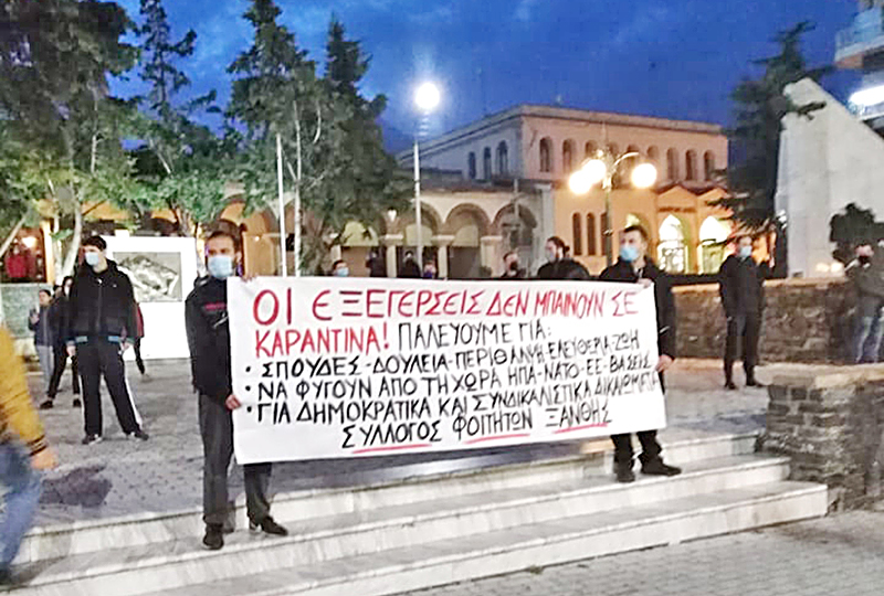 Στην Ξάνθη πραγματοποιήθηκε μαζική διαδήλωση με συμμετοχή του Φοιτητικού Συλλόγου κι οργανώσεων της αριστεράς. Η διαδήλωση έφτασε στην αστυνομική διεύθυνση Ξάνθης όπου απαιτήθηκε η απελευθέρωση των 28 αγωνιστών/τριών που νωρίτερα είχαν δεχθεί εντελώς αναίτια αστυνομική επίθεση και είχαν συλληφθεί. Αφού αφέθηκαν όλοι και όλες ελεύθεροι, το σώμα της πορείας ξανασυγκροτήθηκε και κινήθηκε με συνθήματα προς την Πλατεία και στη συνέχεια προς το Πολυτεχνείο, μέχρι το ύψος της ΔΕΗ, όπου συνάντησε παραταγμένες ισχυρές δυνάμεις των ΜΑΤ.