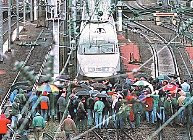 Τις ίδιες μέρες οι σιδηροδρομικοί πετυχαίνουν να ακινητοποιήσουν τις μοναδικές γραμμές που εξακολουθούν να λειτουργούν, τις γραμμές μιας ιδιωτικής εταιρίας που συνδέουν το Παρίσι με Λονδίνο και Βρυξέλλες. Στις 7 Δεκέμβρη καταλαμβάνουν το κέντρο ελέγχου που βρίσκεται στο Καλαί προκαλώντας κομφούζιο στις γραμμές. Τελικά στις 9 Δεκέμβρη πετυχαίνουν να σταματήσουν τα τρένα της εταιρίας Γιούροσταρ, αλλά και τα αυτοκίνητα που προσπαθούσαν να κινηθούν μέσα από το τούνελ της Μάγχης αποκλείοντας τους δρόμους στο Καλαί. Στη Μασσαλία, οι απεργοί σιδηροδρομικοί διαδήλωσαν στα τοπικά γραφεία του κόμματος του Ζιπέ, όπου απέκλεισαν μέσα τους εκπροσώπους του χτίζοντας με τούβλα και λάσπη την κεντρική είσοδο των γραφείων.