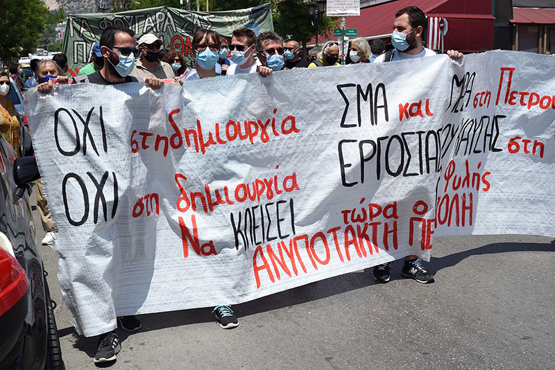 Περίπου 300 άτομα συμμετείχαν στην συγκέντρωση διαμαρτυρίας και μετά στην πορεία από την πλατεία Ηρώ ως τη διασταύρωση 25ης Μαρτίου και Θηβών. Με το νέο σχέδιο της περιφέρειας – κυβέρνησης, όχι μόνο παρατείνεται κι άλλο χρονικά η λειτουργία της φαραωνικής μολυσματικής εγκατάστασης του ΧΥΤΑ, αλλά επεκτείνεται με τη δημιουργία νέας μονάδας καύσης, ενός Σταθμού Μεταφόρτωσης Απορριμμάτων στο αμαξοστάσιο του Δήμου Πετρούπολης και μιας Μονάδας Επεξεργασίας Βιοαποβλήτων σε χώρο πάνω από το νεκροταφείο. Ταυτόχρονα προχωρά η περαιτέρω ιδιωτικοποίηση της διαχείρισης των σκουπιδιών.