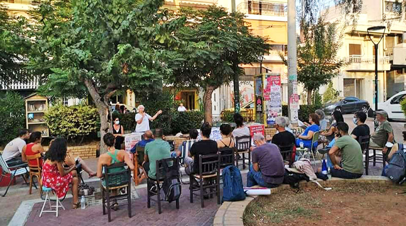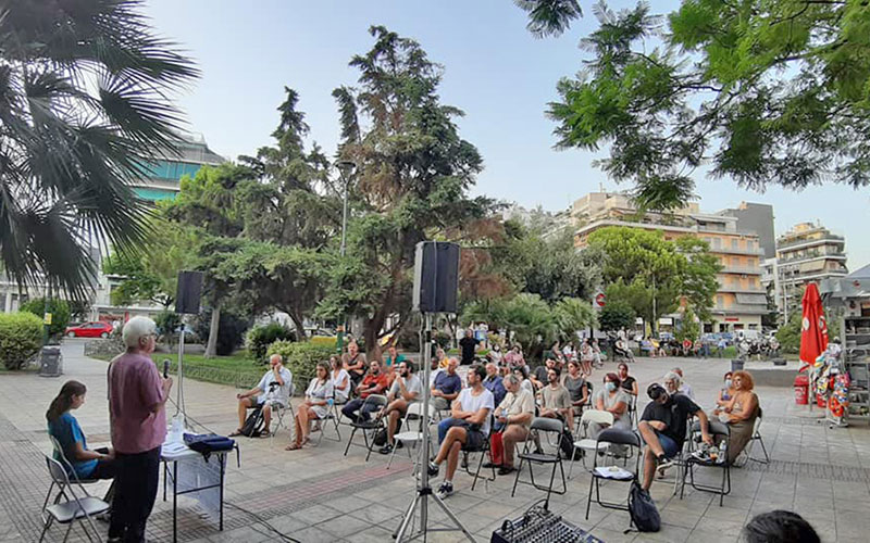 Στα Πετράλωνα, στη συζήτηση πήραν το λόγο καλλιτέχνες, συνταξιούχοι, φοιτητές, εργαζόμενες στα νοσοκομεία. Η συζήτηση, μετά από ερώτηση του Γιώργου, επικεντρώθηκε στη σημασία ενός δυνατού αντιπολεμικού κινήματος, της πάλης ενάντια στην ισλαμοφοβία, τον ρατσισμό, για τα ανοιχτά σύνορα, ενάντια στις δικές μας κυβερνήσεις ως το καλύτερο μήνυμα αλληλεγγύης στους Αφγανούς και τις Αφγανές που θα θελήσουν να παλέψουν ενάντια και στους Ταλιμπάν σε αντίθεση με τις καταστροφικές συνέπειες των επεμβάσεων και των κυρώσεων. Συγκίνηση προκάλεσε η τοποθέτηση του Νταβούτ, Αφγανοϊρανού πρόσφυγα, που μίλησε για το 2015 που βρισκόταν για 3 μήνες στην πύλη Ε2 στον Πειραιά ως την καλύτερη περίοδο της ζωής του λόγω της αλληλεγγύης που συνάντησε.