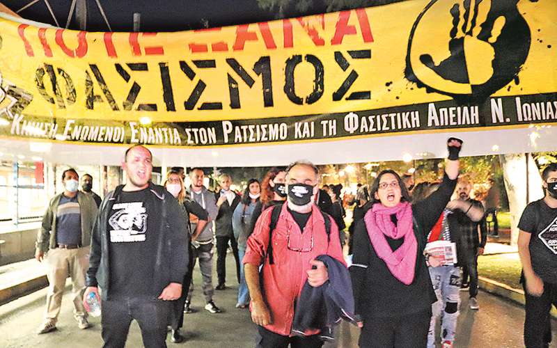 Ο Θάνος, ο Σταμάτης, η Αφροδίτη που χτυπήθηκαν από τους φασίστες, βάδισαν στην κεφαλή της αντιφασιστικής διαδήλωσης στο Ν. Ηράκλειο.