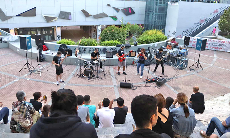 Ο Αργύρης Καραγγελής, φοιτητής στο ΠΑΔΑ πήρε το λόγο για να αναφερθεί στο πώς διαχρονικά οι φασίστες «έτρωγαν πόρτα» σε κάθε τους προσπάθεια να πατήσουν πόδι στα πανεπιστήμια. «Το χρωστάμε στο φοιτητικό κίνημα που συνεχίζει να παλεύει ενάντια στο φασισμό. Ακόμα και την περίοδο που η Χρυσή Αυγή είχε εκλογικές επιτυχίες και τα πρωινάδικα ξέπλεναν τον Λαγό και τον Κασιδιάρη, τα πανεπιστήμια μπόρεσαν κι έμειναν χώροι που οι φασίστες δεν είχαν θέση. Αυτό το φοιτητικό κίνημα σε συνδυασμό με τις εργατικές απεργίες έκαναν ένα από τα μεγαλύτερα αντιφασιστικά κινήματα στην Ευρώπη που οδήγησε στην καταδικαστική απόφαση του 2020. Χρειάζεται να συνεχίσουμε γιατί ο φασισμός δεν έχει πεθάνει».
