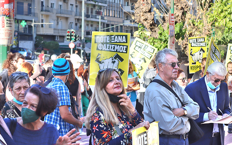 «Ποτέ ξανά φασισμός», «Ο Παύλος ζει τσακίστε τους ναζί», «Ούτε στην Ιταλία ούτε και πουθενά, τσακίστε τους φασίστες σε κάθε γειτονιά», «Καμιά νομιμοποίηση για την Μελόνι, είναι φασίστες είναι δολοφόνοι» ήταν κάποια από τα συνθήματα που ακούστηκαν στη συγκέντρωση που πραγματοποιήθηκε μετά από κάλεσμα της ΑΔΕΔΥ, του ΕΚΑ, των Ε’, Γ’ και Β’ ΕΛΜΕ Αθήνας, των σωματείων εργαζόμενων στα νοσοκομεία του Αγίου Σάββα, ΓΝΑ Γεννηματάς και Παίδων Αγλαΐα Κυριακού, της ΚΕΕΡΦΑ, φοιτητικών σύλλογων Αθήνας, κοινοτήτων μεταναστών και προσφύγων, συλλογικοτήτων και δημοτικών κινήσεων.