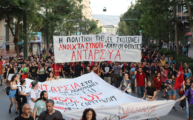 Την σκλήρυνση της ρατσιστικής πολιτικής της Ευρώπης Φρούριο και της ευθυγράμμισης της ελληνικής κυβέρνησης με τη διατήρηση και επέκταση του φράχτη στον Έβρο, το σφράγισμα των συνόρων και τη συνέχιση των δολοφονιών προσφύγων και μεταναστών.