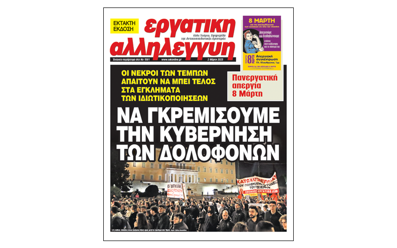 Η έκτακτη έκδοση της Εργατικής Αλληλεγγύης στις 2 Μάρτη 2023