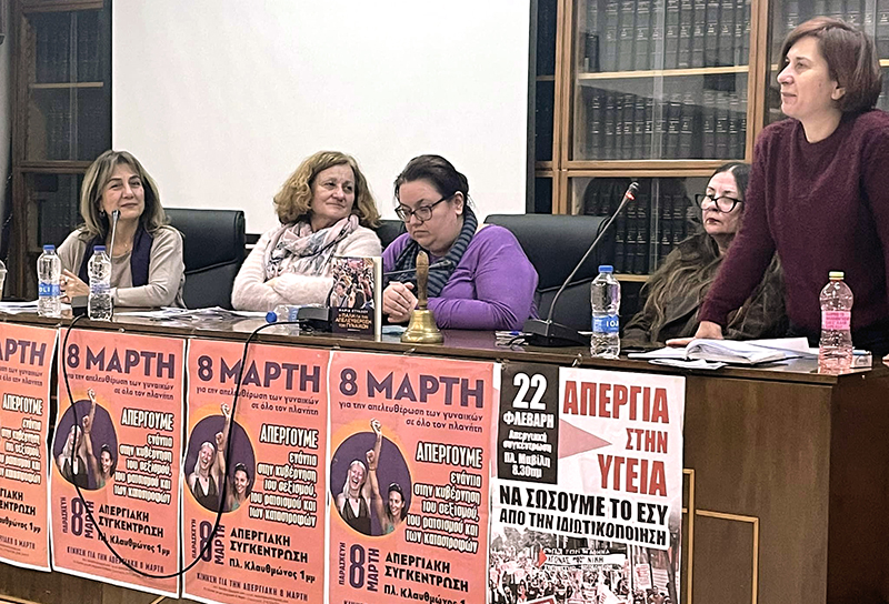 «Οι γυναικοκτονίες έχουν αρχίσει να γίνονται καθημερινό φαινόμενο, ενώ για τις συνθήκες εργασίας τι να πούμε, τις ζούμε και σαν γυναίκες και σαν άντρες με τις γυναίκες όμως σε πιο αδύναμη θέση. Συν ότι πάντα η γυναίκα έχει τις περισσότερες ευθύνες, αν όχι όλες, στην οικογένεια», ξεκίνησε η Θάλεια Καπλάνογλου, εργαζόμενη στο Γενικό Λογιστήριο του Κράτους και συνδικαλίστρια στο Υπ. Οικονομικών, στην εκδήλωση της Κίνησης για την Απεργιακή 8 Μάρτη την Τετάρτη 21/2 στη Νίκαια.