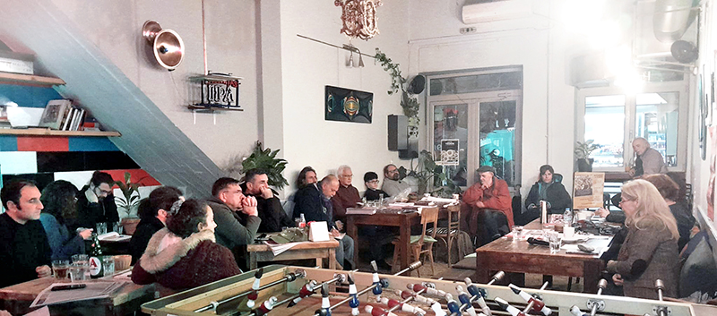 Την ίδια μέρα έγινε η εκδήλωση στο Παγκράτι. Την έμπνευση των πρωινών συναντήσεων υγειονομικών-φοιτητών-αγροτών στο δρόμο, έφεραν οι δυο αγωνίστριες που ήταν πάνελ, η Μαρία Χαρχαρίδου, νοσηλεύτρια και μέλος του ΔΣ του Σωματείου Εργαζόμενων στο ΓΝΑ Γεννηματάς και η Αθανασία Συμψηρή, φοιτήτρια της Φιλοσοφικής.