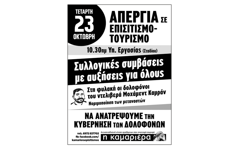 Πανελλαδική απεργία σε όλον τον κλάδο του Επισιτισμού-Τουρισμού 23/10