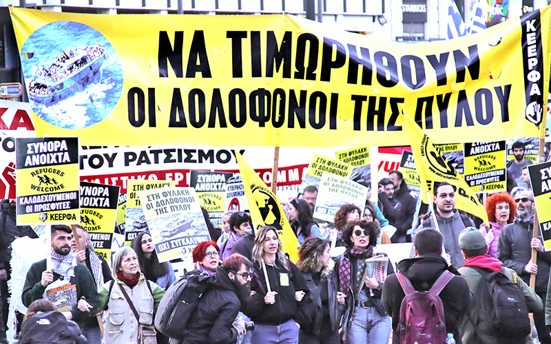 Η σύνδεση των αγώνων μεταξύ τους, χτίστηκε βήμα βήμα. Το πανό της ΚΕΕΡΦΑ για να τιμωρηθούν οι δολοφόνοι της Πύλου δέσποζε στο κέντρο του μεγάλου συλλαλητηρίου της 26ης Γενάρη –και προφανώς σε αυτό της 28ης Φλεβάρη. Αντίστοιχα και αυτό της Κίνησης για την Απεργιακή 8 Μάρτη ενάντια στο γυναικοκτόνο σεξισμό. Ακούστηκε ηχηρά από το βήμα των μεγάλων συγκεντρώσεων όταν η Μαρία Καρυστιανού καλούσε στο μικρόφωνο τις μητέρες των δολοφονημένων γυναικών, της Ερατούς από τη Μυτιλήνη και της Κυριακής από τους Αγίους Αναργύρους, όπως και με το μήνυμα αλληλεγγύης και κοινού αγώνα που έστειλαν οι συγγενείς των θυμάτων της Πύλου από το μακρινό Πακιστάν προς τους συγγενείς των θυμάτων των Τεμπών. Έδωσε επόμενους σταθμούς με το απεργιακό συλλαλητήριο της 8ης Μάρτη και την αντιρατσιστική συναυλία – συλλαλητήριο της 22 Μάρτη στο Σύνταγμα με σύνθημα «Τέμπη – Πύλος Κοινός Αγώνας».
