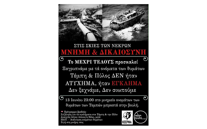 Ενώνουμε τις φωνές μας με τους επιζώντες του ναυαγίου που καταγγέλλουν ότι το πλοίο τους ανατράπηκε από τη βίαιη ρυμούλκηση ενός σκάφους της Ακτοφυλακής, το οποίο υποτίθεται ότι ήθελε να τους απωθήσει πίσω στην Ιταλία. Είχαν το δικαίωμα να λάβουν άσυλο και φιλοξενία, αλλά όπως όλοι οι πρόσφυγες και οι μετανάστες αντιμετώπισαν φράχτες, διώξεις από την Ακτοφυλακή, τους συνοριοφύλακες και την Frontex, στρατόπεδα συγκέντρωσης, επαναπροωθήσεις και θάνατο.