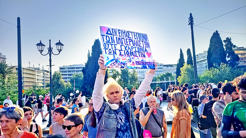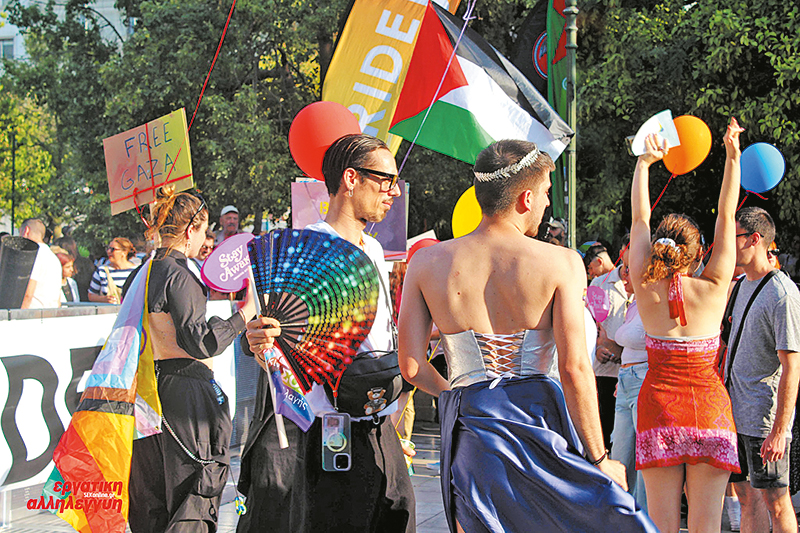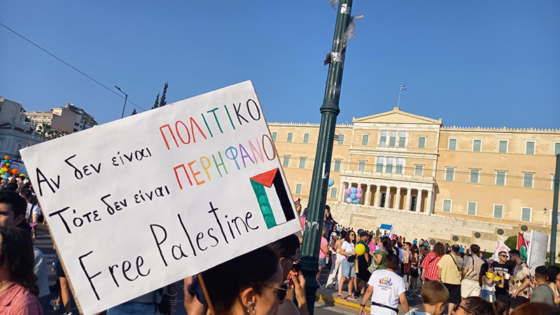 Το φετινό σλόγκαν του Pride ήταν: «Μετράμε 20 χρόνια» - για να γιορταστούν τα 20 χρόνια που η πορεία περηφάνιας γίνεται στην Αθήνα. Φέτος δεν μπορούσαμε να μετρήσουμε τον κόσμο που πλημμύρισε το Σύνταγμα και τους δρόμους της Αθήνας στη διαδήλωση. Δεν μπορούσαμε να μετρήσουμε τα πλακάτ και τα συνθήματα ενάντια στο σεξισμό την ομοφοβία, την τρανσφοβία και την καταπίεση. Δεν μπορούσαμε να μετρήσουμε τις πολύχρωμες και τις παλαιστινιακές σημαίες, να ανεμίζουν ή να είναι ζωγραφισμένες στα πρόσωπα, τα σώματα, τα πλακάτ. Αναρίθμητες ήταν και οι κουφίγιε που φορούσαν οι διαδηλωτές. Πολλές από τις ομιλίες στην εξέδρα έληγαν με το Λευτεριά στην Παλαιστίνη και εναλλάσσονταν με συνθήματα από την πλευρά του κοινού.