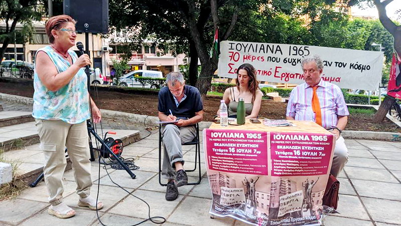 Με επιτυχία και πλούσια συζήτηση πραγματοποιήθηκε η εκδήλωση του Σοσιαλιστικού Εργατικού Κόμματος για τα Ιουλιανά 1965 στη Θεσσαλονίκη. Όπως μας λέει ο Ευκλείδης Μακρόγλου, δικηγόρος:
