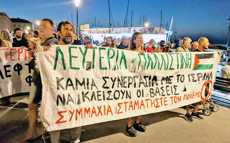Στην Ελλάδα οι συγκεντρώσεις και οι διαμαρτυρίες κάθε είδους συνεχίζονται αμείωτα από το θέατρο της Επιδαύρου το οποίο αντηχεί από τα χιλιάδες στόματα που φωνάζουν την κραυγή «Λευτεριά στην Παλαιστίνη» στις παραστάσεις της Ορέστειας του Τερζόπουλου μέχρι τα γήπεδα ποδοσφαίρου όπου ξεκίνησε το πρωτάθλημα με τους φιλάθλους όλων των ομάδων να σηκώνουν παλαιστινιακές σημαίες και να φωνάζουν συνθήματα υπέρ της Παλαιστίνης. Χιλιάδες διαδήλωσαν στις 24/8 στο Σύνταγμα και σε μια σειρά πόλεις σε όλη την Ελλάδα, στα συλλαλητήρια που καλούσε το ΠΑΜΕ, η ΕΕΔΥΕ, η Παλαιστινιακή Παροικία, η Συμμαχία Σταματήστε τον Πόλεμο, το March to Gaza και άλλες κινήσεις αλληλεγγύης, συνδικάτα, φοιτητικοί σύλλογοι, οργανώσεις της Αριστεράς.