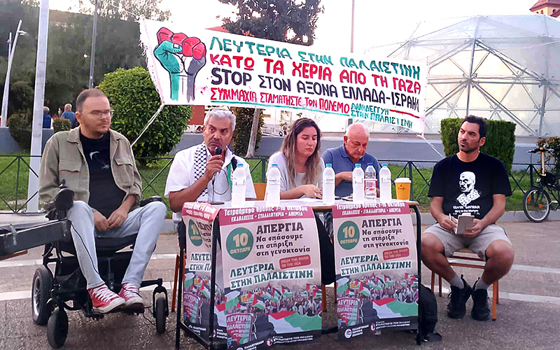 «Το ζητούμενο είναι μια δημοκρατική Παλαιστίνη: ένα κράτος για όλους και όλες όπου θα έχουν ίσα δικαιώματα, όχι ένας μηχανισμός αποκλεισμού. Μια τέτοια λύση είναι αναγκαία γιατί αποκαθιστά την ιστορική δικαιοσύνη μετά από δεκαετίες Νάκμπα, προσφυγιάς και κατοχής και εγγυάται αξιοπρέπεια μέσα από δικαιώματα, ελευθερίες και ουσιαστική πολιτική συμμετοχή. Μόνο έτσι μπορεί να τερματιστεί ο φαύλος κύκλος της καταπίεσης και να οικοδομηθεί ειρήνη και σταθερότητα... Αυτή η προοπτική δεν είναι μόνο ηθική· είναι και ρεαλιστική... Γιατί η Παλαιστίνη δεν είναι ένα όνομα στον χάρτη· είναι άνθρωποι, οικογένειες και κοινότητες που δικαιούνται ζωή και ελευθερία. Αυτή η απαίτηση δεν μπορεί να μείνει μόνο στα χαρτιά ούτε κλεισμένη σε αίθουσες συνεδρίων· χρειάζεται να βγει στον δρόμο, να γίνει συλλογική δύναμη. Αυτήν ακριβώς τη δύναμη εκφράζει η απεργία της 10ης Οκτώβρη. Δεν είναι μια τυπική κινητοποίηση, αλλά η στιγμή να ενώσουμε τις φωνές μας με εκείνους που στενάζουν κάτω από τις βόμβες, να δηλώσουμε ότι οι λαοί δεν έχουν τίποτα να κερδίσουν από πολέμους και γενοκτονίες. Όπως κάποτε το διεθνές κίνημα μποϊκοτάζ και απεργιών απομόνωσε το καθεστώς του απαρτχάιντ στη Νότια Αφρική, έτσι και σήμερα μπορούμε να σπάσουμε τη συνενοχή με το καθεστώς που επιβάλλεται στον παλαιστινιακό λαό. Στις 10 Οκτώβρη, στην πλατεία Κλαυθμώνος, ας δείξουμε ότι η Παλαιστίνη δεν είναι μόνη. Ας ακουστεί από την Αθήνα ως τη Γάζα το σύνθημα: Λευτεριά στην Παλαιστίνη».