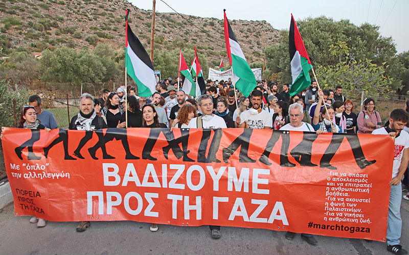 Χιλιάδες συμμετείχαν στις δράσεις που καλούσαν το Παγκρήτιο Συντονιστικό για την Παλαιστίνη, το March to Gaza Greece, η Συμμαχία Σταματήστε τον Πόλεμο – Αλληλεγγύη στην Παλαιστίνη, το BDS, η Παλαιστινιακή Παροικία και πλήθος οργανώσεων και συλλογικοτήτων.