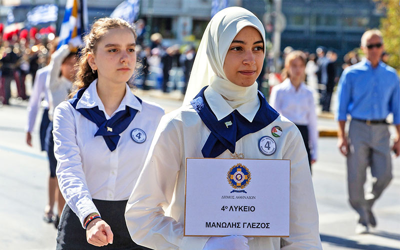 «Το έκανα μαζί με άλλες δύο συμμαθήτριες που απλώς δεν τις έπιασε ο φωτογραφικός φακός. Το έκανα γιατί το ένιωθα, γιατί διαβάζω και βλέπω καθημερινά τι συμβαίνει στη Γάζα... Εχω έναν μικρό αδελφό, μόλις δυόμισι χρόνων, και δεν μπορώ να τον φανταστώ να πεθαίνει από την πείνα ή να σκοτώνεται σε έναν βομβαρδισμό. Βέβαια, περίμενα ότι κάποιοι θα αντιδρούσαν έτσι, ότι θα πουν “αυτή είναι μια εθνική γιορτή, αφορά την πατρίδα μας”, αλλά δεν καταλαβαίνω γιατί το ελληνικό “Οχι”, ο ξεσηκωμός των Ελλήνων ενάντια στον φασισμό και στον πόλεμο, δεν είναι μια γιορτή για όλους τους λαούς και για άλλες πατρίδες. Κάποιοι είπαν: Αν νοιάζεστε τόσο πολύ για την Παλαιστίνη, να πάτε εκεί, να παρελάσετε ή να πολεμήσετε. Αλλά τι νόημα έχει να γιορτάζουμε το “δικό μας ΟΧΙ” και να μη λέμε “ΟΧΙ” σε κάθε τι άδικο και βάρβαρο που γίνεται σε όλο τον κόσμο;