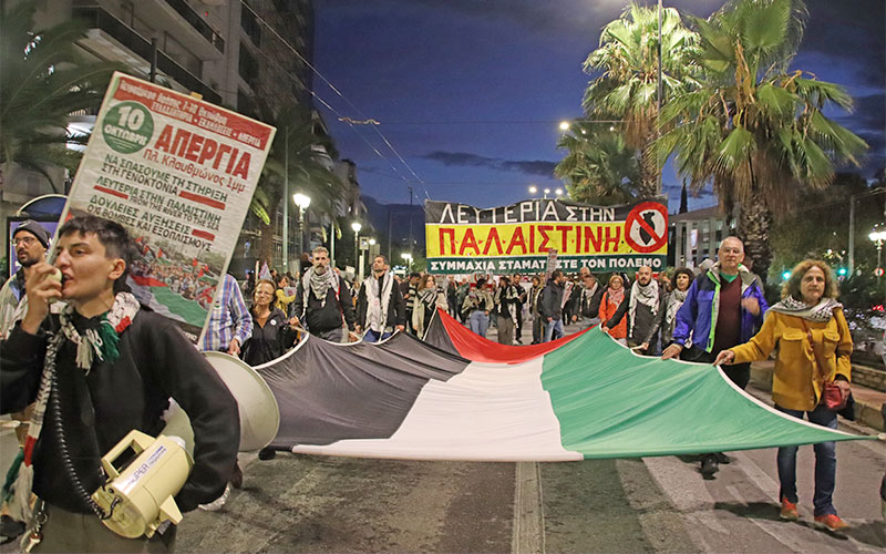 Δεν πρόκειται για έναν αγώνα αλληλεγγύης σε μια “μακρινή” σφαγή που πρέπει να σταματήσει. Η μάχη για Λευτεριά στην Παλαιστίνη συνδέεται με τους αγώνες της εργατικής τάξης και της νεολαίας στη χώρα μας σε όλα τα επίπεδα. Η κυβέρνηση του Μητσοτάκη ήταν από τις πρώτες που έτρεξαν στο πλευρό του “Μπίμπι” και παραμένει σφιχταγκαλιασμένη μαζί του, ακόμα και όταν άλλες κυβερνήσεις αναγκάζονται, έστω και υποκριτικά μετά από δυο χρόνια, να παίρνουν αποστάσεις.