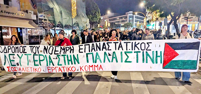 Φέτος η ημέρα που τιμάμε την εξέγερση του Πολυτεχνείου, χαρακτηρίζεται από τον αγώνα αλληλεγγύης στην Παλαιστίνη. Τίποτα δεν έχει τελειώσει. Θα συνεχίσουμε να παλεύουμε για ένα ενιαίο παλαιστινιακό κράτος από τον Ιορδάνη μέχρι τη Μεσόγειο.