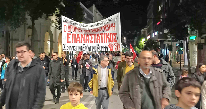 Στη Θεσσαλονίκη «χιλιάδες διαδήλωσαν μαχητικά, 52 χρόνια από την εξέγερση του Πολυτεχνείου. Το Σοσιαλιστικό Εργατικό Κόμμα με πανό "Μια μόνο λύση - Επανάσταση" έδωσε το στίγμα: όπως και τότε, έτσι και σήμερα ο επαναστατικός δρόμος είναι η διέξοδος από ένα σύστημα σε βαθιά κρίση. Και η ΚΕΕΡΦΑ με το πανό "Νίκη στην Ιντιφάντα", έκανε τις συνδέσεις με τον παλαιστινιακό αγώνα που συνεχίζεται και ξεσηκώνει εκατομμύρια διεθνώς, σε μια διαδήλωση όπου οι παλαιστινιακές σημαίες βρίσκονταν παντού» μετέφερε ο Ευκλείδης Μακρόγλου.
