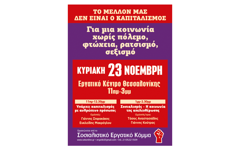 Εκδηλώσεις: "Το μέλλον μας δεν είναι ο καπιταλισμός"