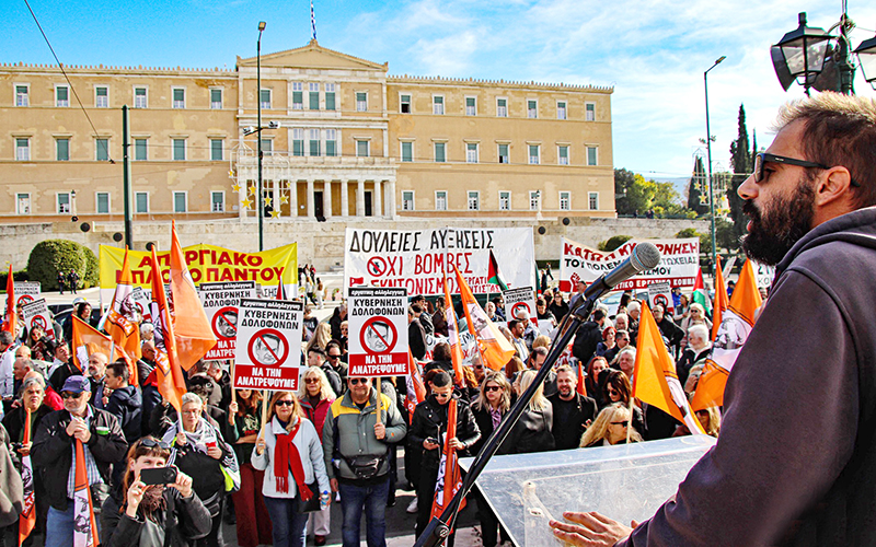 Η χρονιά ξεκίνησε δυναμικά με τη χτεσινή πορεία και το αντιπολεμικό κίνημα θα δυναμώσει. Οι υγειονομικοί είναι στα κάγκελα, οι εκπαιδευτικοί είναι στα κάγκελα. Στο Περιστέρι είχαμε δυο δυναμικές πορείες το καλοκαίρι και το φθινόπωρο για τις επιθέσεις των φασιστών σε τρανς άτομα. Κανένας και κανένα δεν είναι μόνο του. Στους εκπαιδευτικούς συνεχίζεται η μάχη ενάντια στην αξιολόγηση-πειθάρχηση, ενάντια στις συγχωνεύσεις τμημάτων και σχολείων. Όλες οι μάχες είναι μπροστά μας, ανοιχτές».