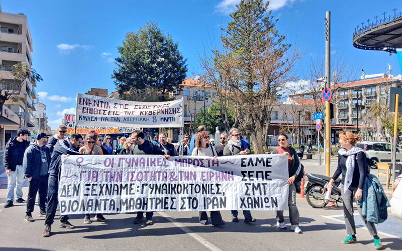 «Συγκέντρωση και πορεία πραγματοποιήθηκε και στα Χανιά στο πλαίσιο της απεργιακής 8 Μάρτη, ανήμερα της Παγκόσμιας Ημέρας των Γυναικών», αναφέρει το ΣΕΚ Χανίων. «Στην πορεία, που κινήθηκε σε κεντρικούς δρόμους της πόλης, συμμετείχαν με τα πανό τους ο Ενιαίος Φοιτητικός Σύλλογος Πολυτεχνείου Κρήτης, τα Σωματεία της Εκπαίδευσης (ΣΕΠΕ και ΕΛΜΕ Χανίων) και το Σωματείο Μισθωτών Τεχνικών σε κοινό μπλοκ, η Κίνηση για την Απεργιακή 8 Μάρτη, η Πρωτοβουλία Αντίστασης, η Κομμουνιστική Απελευθέρωση - νΚΑ, καθώς και συλλογικότητες από τον αντιεξουσιαστικό χώρο. Η κινητοποίηση είχε έντονο αντιπολεμικό χαρακτήρα με συνθήματα που καταδίκαζαν την αμερικανο-σιωνιστική επίθεση στο Ιράν και ανέδειξαν τη σύνδεση με τα εγκλήματα της κυβέρνησης στα Τέμπη, την Πύλο, τη Βιολάντα και την Παλαιστίνη».
