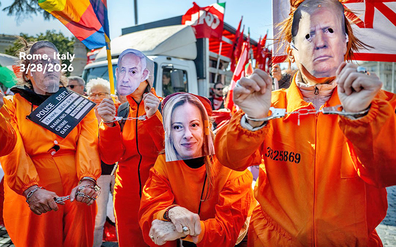 Στις 14 Μάρτη, μια εβδομάδα πριν το δημοψήφισμα, χιλιάδες διαδηλωτές κατέκλυσαν το κέντρο της Ρώμης με συνθήματα όχι μόνο ενάντια στη δικαστική μεταρρύθμιση αλλά και ενάντια στον πόλεμο στο Ιράν και τη γενοκτονία στη Γάζα. Σύμφωνα με το ρεπορτάζ του AP, στη διαδήλωση, δίπλα στα κόκκινα πανό των συνδικάτων, κυμάτιζαν παλαιστινιακές, κουβανικές και ιρανικές σημαίες ενώ οι το σύνθημα που κυριαρχούσε ήταν «Μελόνι παραιτήσου».