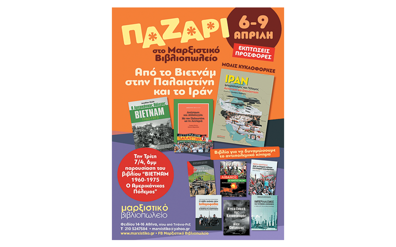 ΠΑΖΑΡΙ με εκπτώσεις και προσφορές στο Μαρξιστικό Βιβλιοπωλείο από 6 ως 9 Απρίλη