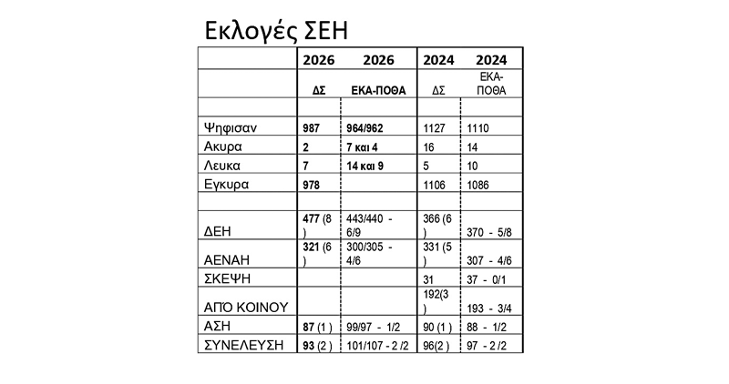 Αποτελέσματα εκλογών στο ΣΕΗ