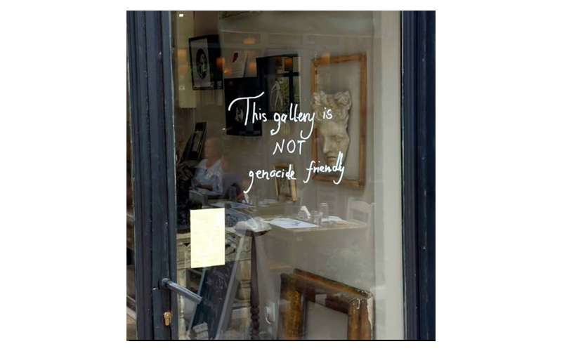 Η συγκεκριμένη γκαλερί, σε μια περιοχή που το Ισραηλινό κεφάλαιο διαρκώς επεκτείνεται, είχε στοχοποιηθεί επανειλημμένα από σιωνιστές εξαιτίας της αυτονόητης επιγραφής "This gallery is not genocide friendly" στην είσοδό της. Το πέρασμα από τα υβριστικά σχόλια στην εμπρηστική επίθεση είναι μια επικίνδυνη κλιμάκωση που θα πρέπει να μας βρει όλες και όλους απέναντί της.