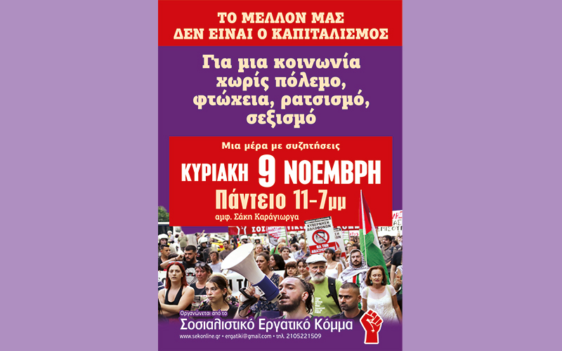 ΘΕΣΣΑΛΟΝΙΚΗ Με επιτυχία και πλούσια συζήτηση πραγματοποιήθηκε την Κυριακή 23/11 το μονοήμερο εκδηλώσεων που διοργάνωσε το Σοσιαλιστικό Εργατικό Κόμμα με θέμα “Το μέλλον μας δεν είναι ο καπιταλισμός”....