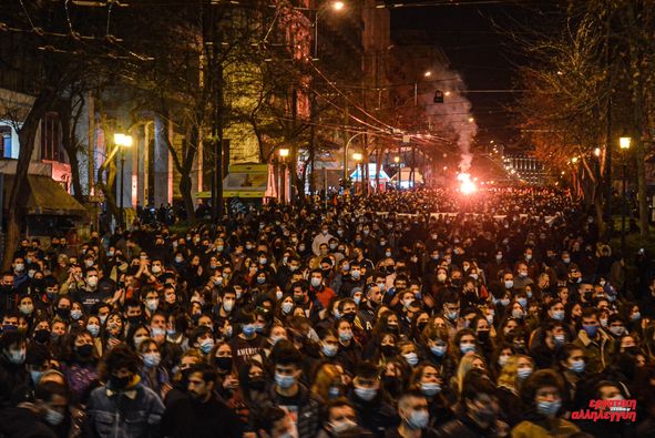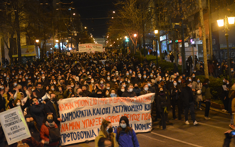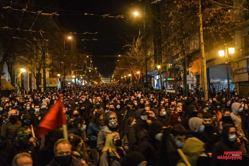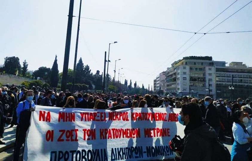Μαζικά συλλαλητήρια πραγματοποιήθηκαν για τρεις συνεχόμενες βραδιές μεταξύ 1 και 3 Μάρτη ενάντια στην εξόντωση του απεργού πείνας Δημήτρη Κουφοντίνα. "Κανένας νεκρός, της πείνας απεργός", "Μητσοτάκη...